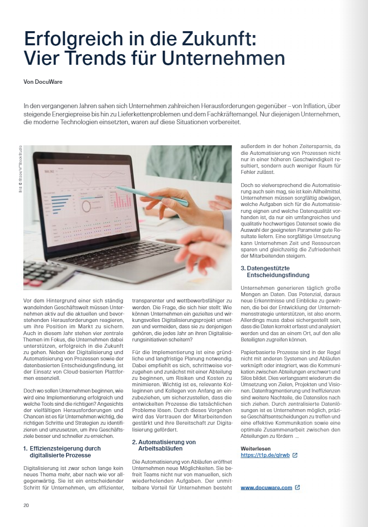 Mitte letzten Jahres übernahm der japanische Konzern Ricoh den ECM-Anbieter DocuWare. Mit dem Deal will man das Ziel, einer der führenden Technologie-Partner für die Digitalisierung des Mittelstands zu werden, noch schneller erreichen. INFO-MARKT fragte bei DocuWare-Geschäftsführer Max Ertl nach weiteren Details.