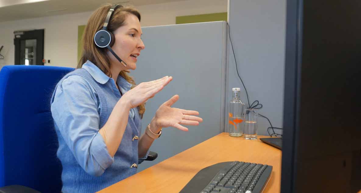 Gleich geht´s los: Letzte Vorbereitungen für den Dreh eines Live Webinars (v.l.n.r.: Referentin Ivana Blasevic, Kameramann Robert Winter und Referentin Aline Störk)