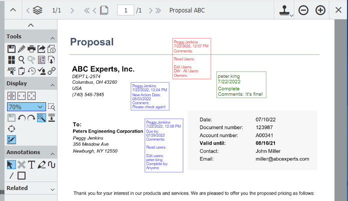 In contrast to stamps on paper, digital stamps in DocuWare are applied on another layer – the so-called annotation level – and it works as if a transparent film is layered over a document. This transparent layer is displayed as the default, so that you can quickly see any processing cues or remarks that were affixed using stamps, notes or other markups.