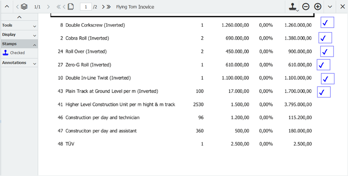 DocuWare gives you the option to keep a stamp active after it is first selected. So with one click, you can place the stamp on the document as often as you like. This is particularly useful when, for example, a longer list of items has to be checked off on a delivery note or invoice: